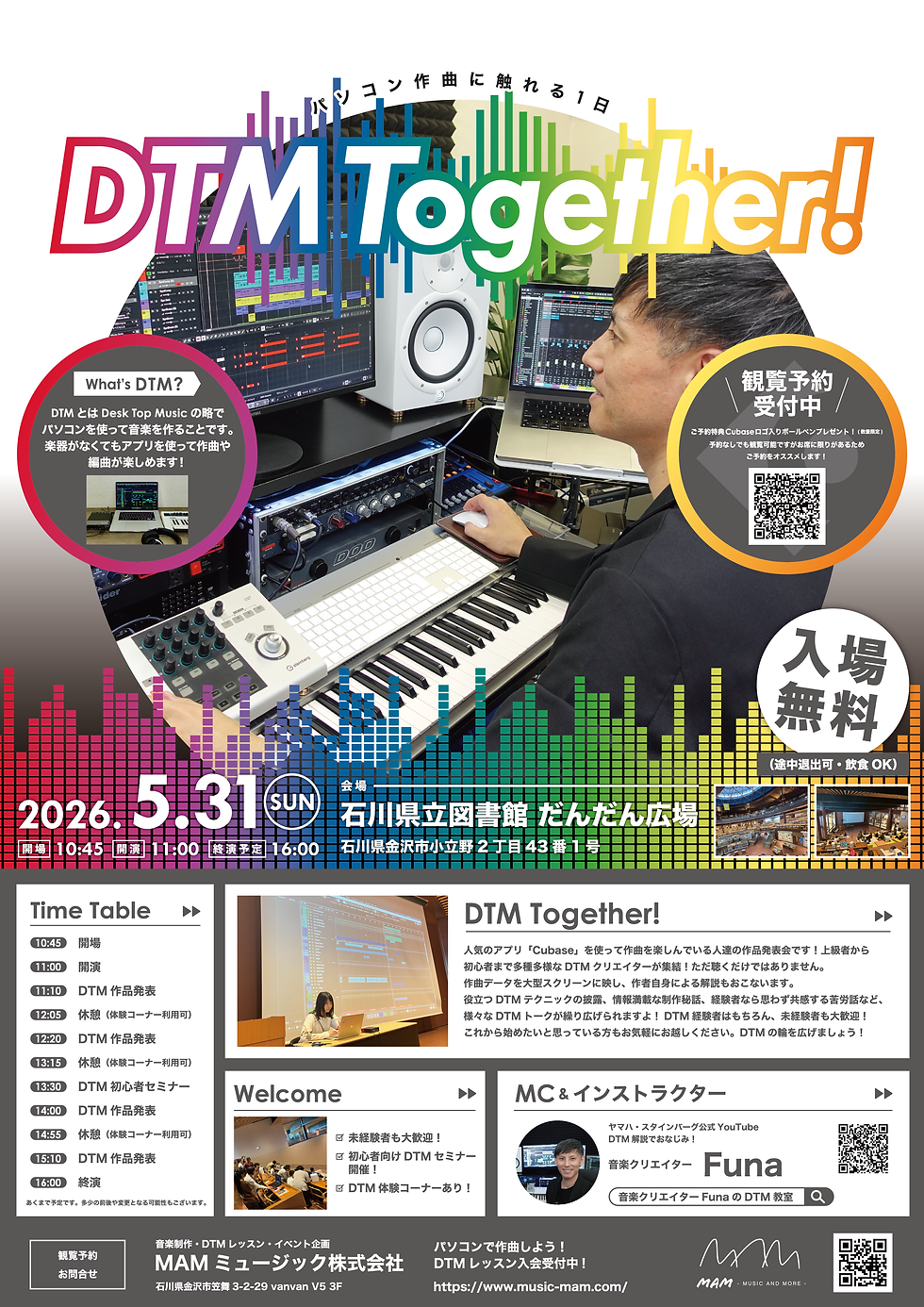 全国的にも珍しいDTMに特化したイベント「DTM Together!」が今年も開催されます!